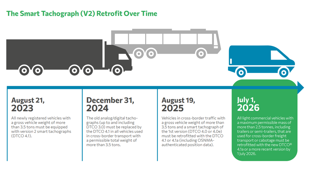 Secondo i regolamenti dell'UE, i seguenti requisiti saranno applicati ai veicoli commerciali leggeri nel trasporto commerciale transfrontaliero a partire dal 1 luglio 2026: